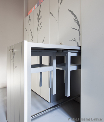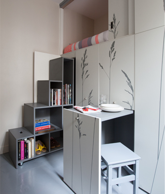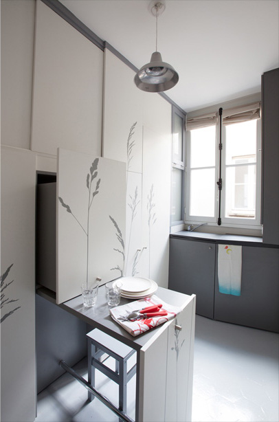 Κατά παρόμοιο τρόπο, αυτό το μικροσκοπικό διαμέρισμα στο Παρίσι, έχει σχεδιαστεί να ‘ξεδιπλώνει’ σε πολλαπλά δωμάτια, δημιουργώντας όλες τις απαραίτητες ανέσεις που χρειάζεται ο ένοικός του.