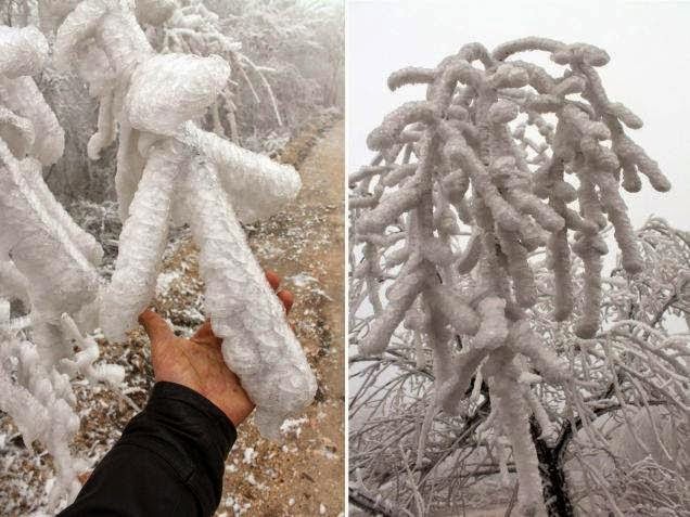 Όταν η ομίχλη έφτασε στο δάσος η θερμοκρασία άρχισε να πέφτει ραγδαία. Η ομίχλη πάγωσε ότι βρήκε μπροστά της. Δέντρα ακόμα και ζώα. Είναι ένα σπάνιο και επικίνδυνο φαινόμενο σύμφωνα με πληροφορίες..