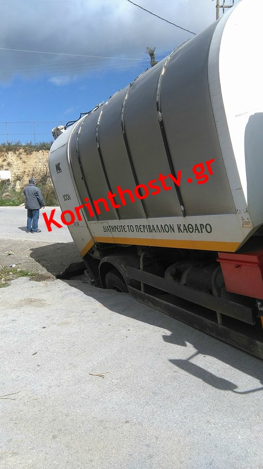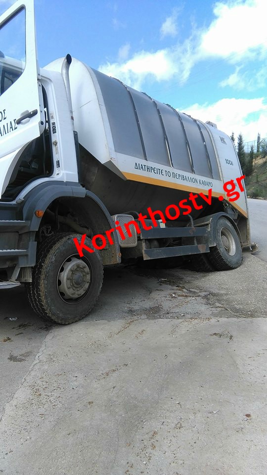 Απο θαύμα δεν θρηνήσαμε σήμερα το πρωί όταν απορριματοφόρο του δήμου Σικυωνίων βυθίστηκε στο οδόστρωμα.