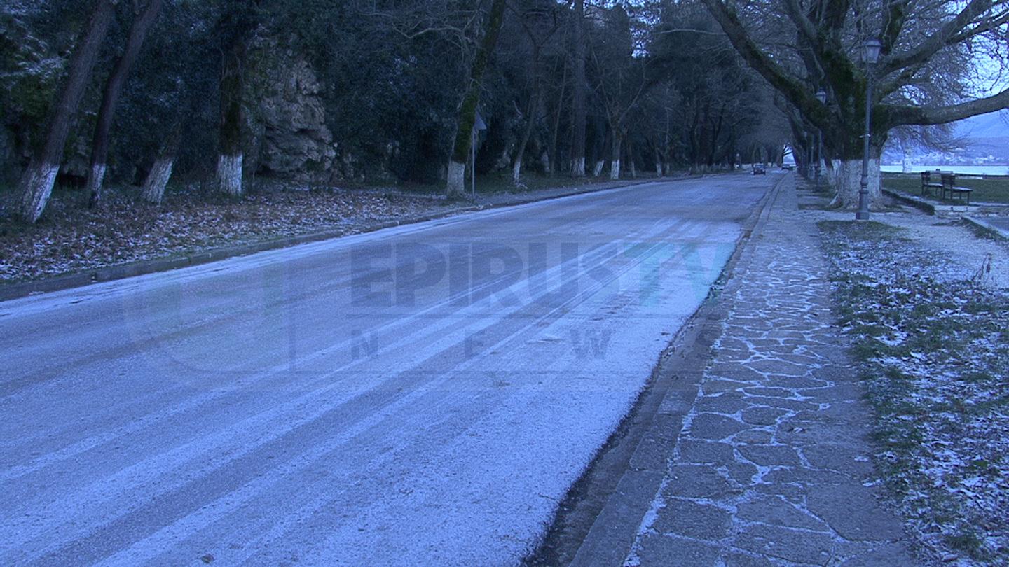Ιδιαίτερη προσοχή όμως οφείλουν να δείχνουν οι οδηγοί και στην Ε.Ο Ιωαννίνων Αθηνών ,καθώς δεν λείπουν παγωμένα σημεία «παγίδες» ,για την ασφαλή κίνηση των οχημάτων .