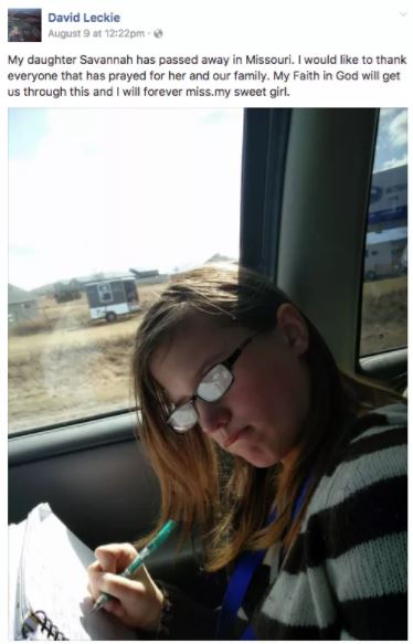 O David Leckie, o θετός πατέρας της έφηβης, μοιράστηκε την είδηση του θανάτου της κόρης του στη σελίδα του στο Facebook.