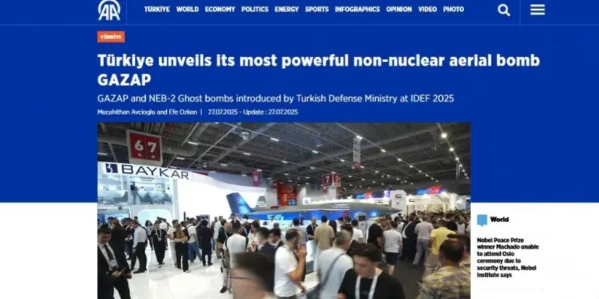 Στις αρχές του 2025, η Τουρκία προκάλεσε διεθνές ενδιαφέρον παρουσιάζοντας τη νέα της βόμβα, με την ονομασία Gazap. Όπως γράφει η γαλλική Sciencepost, αυτή η βόμβα φέρεται να είναι «η πιο ισχυρή μη πυρηνική βόμβα στον κόσμο». Στόχος της Άγκυρας ήταν να αναδείξει τις τεχνολογικές της εξελίξεις στην αμυντική βιομηχανία, ενισχύοντας την εικόνα της πέρα από την ήδη αξιοσημείωτη πρόοδο στα drones και τις αυτόνομες τεχνολογίες.