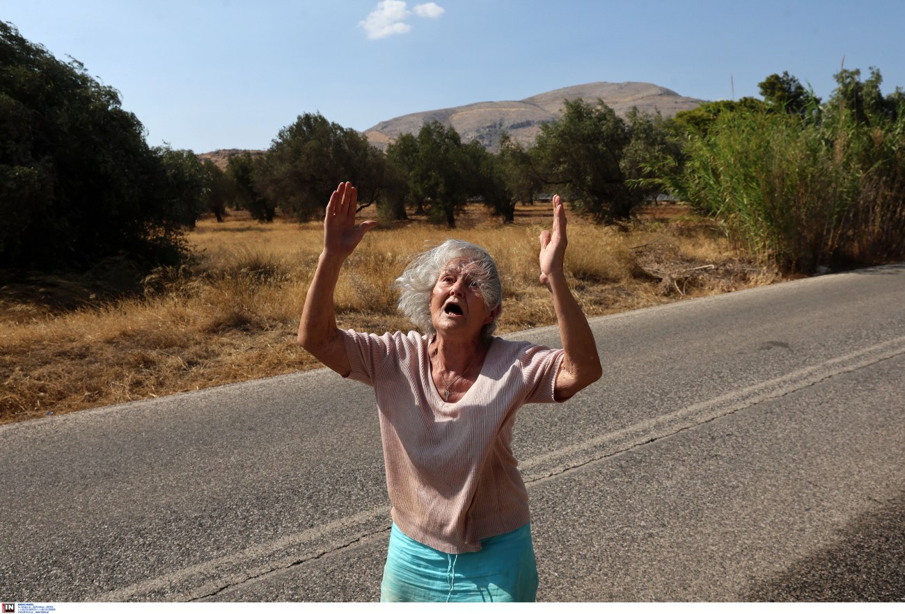 Η ηλικιωμένη γυναίκα της φωτογραφίας δεν έχει φύγει. Στέκεται εκεί. Κοιτά τη φωτιά. Και πίσω από αυτή τη σιωπηλή στάση, αποτυπώνεται η κραυγή μιας ολόκληρης κοινότητας που αισθάνεται μόνη και απροστάτευτη.