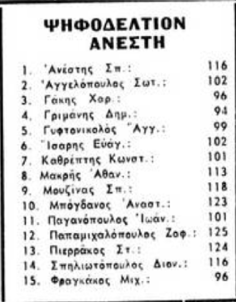 Έτσι λοιπόν την Τετάρτη 1 Σεπτεμβρίου 1971 οι Παναθηναϊκοί μαζεύονται για να εκλέξουν τη νέα διοίκηση του Συλλόγου τους. Τρία ψηφοδέλτια υπάρχουν. Ένα του πρώην κυβερνητικού επιτρόπου του ΠΑΟ και διοικητή της Δεύτερης Μοίρας Αλεξιπτωτιστών στρατιωτικού Κίτσιου, ένα δεύτερο του πρώην αντιδημάρχου Αθηναίων (επί Χούντας, πίσω από το χουντικό δήμαρχο Ρίτσο) κινηματογραφιστή Ανέστη (ήταν μέλος του ΠΑΟ από τη δεκαετία του ’60, πριν τη Χούντα) και ένα τρίτο του κυρίου Καραδήμου.