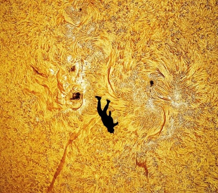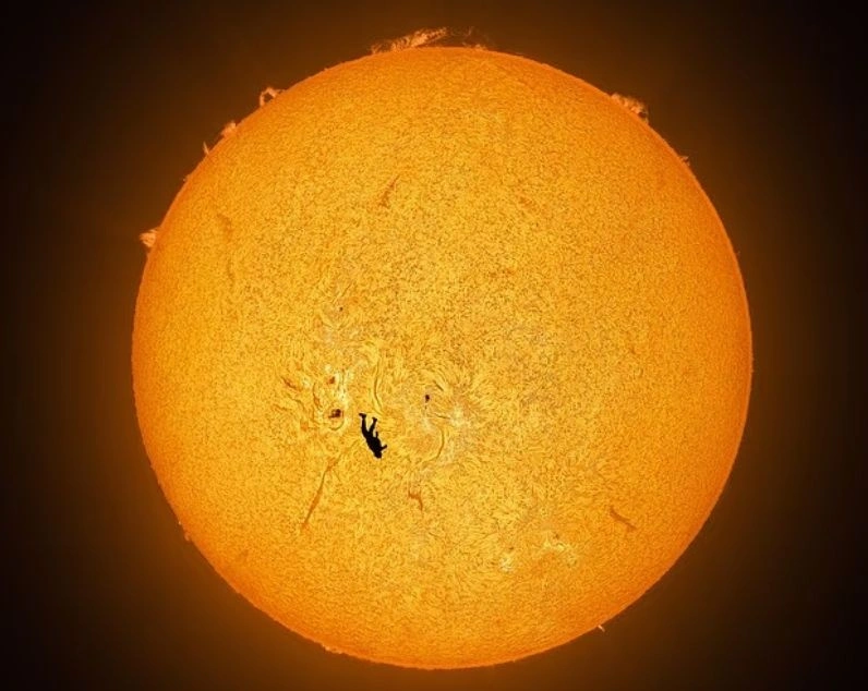 Για να εστιάσει τόσο τον Ήλιο όσο και στον αλεξιπτωτιστή, η κάμερα του φωτογράφου έπρεπε να τοποθετηθεί στο έδαφος σε απόσταση 3,2 χιλιομέτρων.