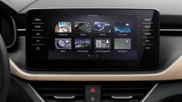Εκεί όπου οι διαφορές σε σχέση με το Rapid Spaceback είναι θεαματικές, είναι στο εσωτερικό του, όπου το Scala υιοθετεί μια σαφώς πιο σύγχρονη και ποιοτική εικόνα με υψηλότερης ποιότητας υλικά και άφθονη τεχνολογία. Ενδεικτικό είναι ότι στις επιλογές του συγκαταλέγεται πλήρως ψηφιακός πίνακας οργάνων 10,25 ιντσών καθώς και σύστημα infotainment με οθόνη 9,2 ιντσών και τη δυνατότητα αυτόματης αναβάθμισης και online λειτουργιών.