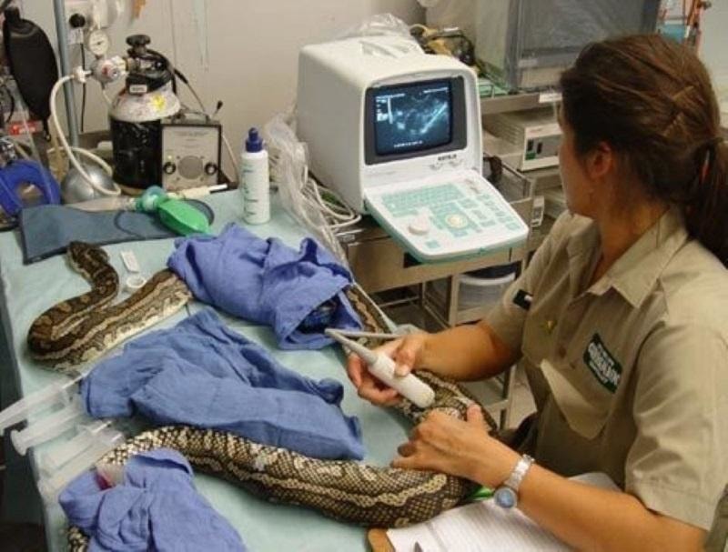Η γυναίκα άρχισε να ανησυχεί όταν το φίδι. που συνήθως έτρωγε το φαγητό που του έδινε, σταμάτησε να τρώει. Όταν μετά από δύο εβδομάδες προσπαθειών το φίδι δεν έτρωγε τίποτα, αποφάσισε να το πάει στον κτηνίατρο.