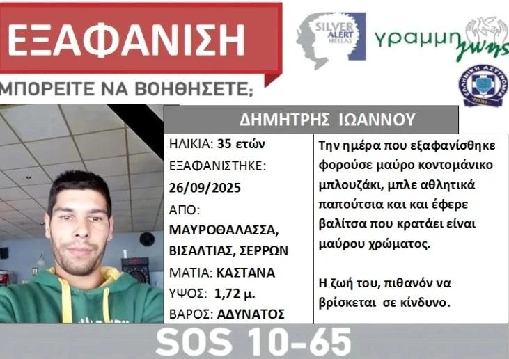 Συναγερμός έχει σημάνει στις αρχές για την εξαφάνιση 35χρονου άνδρα στις Σέρρες