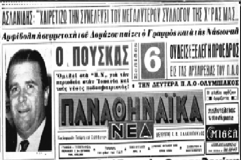 4. Επανω λεζαντα στην εφημεριδα με μεγαλα γραμματα γραφει: ΑΣΛΑΝΙΔΗΣ (δεξι χερι οχι της χηρας αλλα του Παπαδοπουλου) «ΧΑΙΡΕΤΙΖΩ ΤΗΝ ΣΥΝΕΛΕΥΣΗ ΤΟΥ ΜΕΓΑΛΥΤΕΡΟΥ ΣΥΛΛΟΓΟΥ ΤΗΣ ΧΩΡΑΣ»