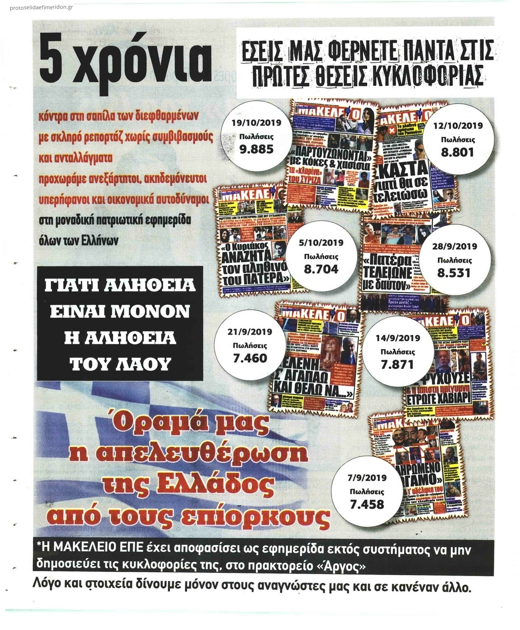 Μια ημερήσια εφημερίδα που δεν ανήκει σε κόμμα ώστε να υποστηρίζετε από οπαδούς,χωρίς να διαβάζετε,ούτε καν να δείχνετε,από τις πρωινές εκπομπές όλων των τηλεοπτικών σταθμών,χωρίς διαφήμιση με spot,χωρίς χρηματοδότες, βρίσκετε σχεδόν στην πρώτη θέση κυκλοφορίας του ημερήσιου δελτίου των εφημερίδων που μοιράζονται μέσω του πρακτορείου σε όλη την Ελλάδα.