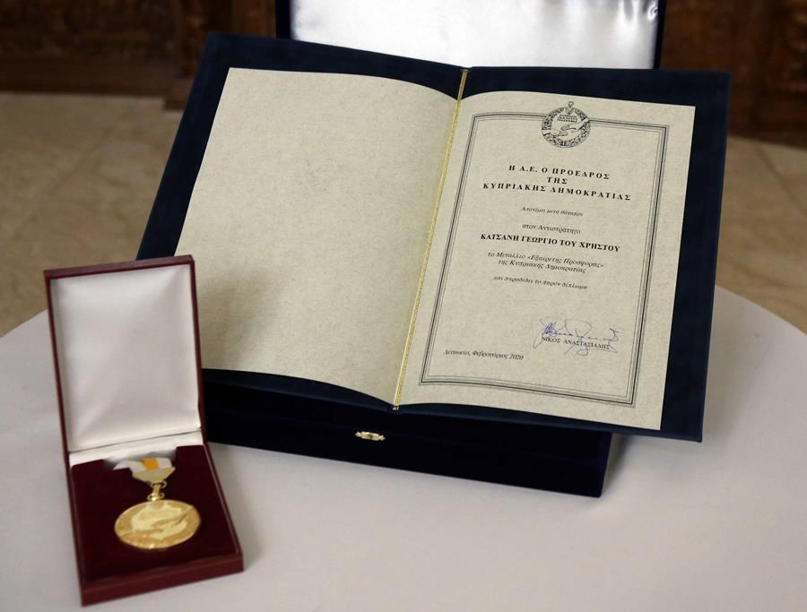Μετά το πέρας του τρισάγιου, ο Υπουργός Άμυνας Σάββας Αγγελίδης επέδωσε εκ μέρους του Προέδρου της Δημοκρατίας το μετάλλιο εξαίρετης προσφοράς της Κυπριακής Δημοκρατίας στον Αντιστράτηγο Γεώργιο Κατσάνη, το οποίο παρέλαβε η κόρη του πεσόντα, Ευανθία. Ακολούθησε η κατάθεση στεφάνων και ψάλθηκε ο Εθνικός Ύμνος.