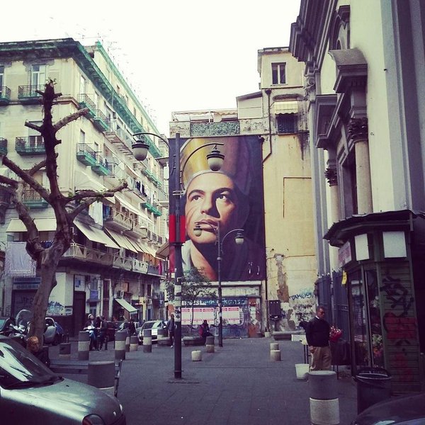 Πρόκειται για ένα τεράστιο έργο, που καλύπτει έναν τοίχο τριώροφου κτηρίου και απεικονίζει τον Σαν Τζενάρο, τον πολιούχο της Νάπολης. Το σχέδιο όμως του αγίου και η φυσιογνωμία του θυμίζουν πολύ τον Έλληνα πρωθυπουργό, με αποτέλεσμα όσοι το βλέπουν για πρώτη φορά να… μπερδεύονται!