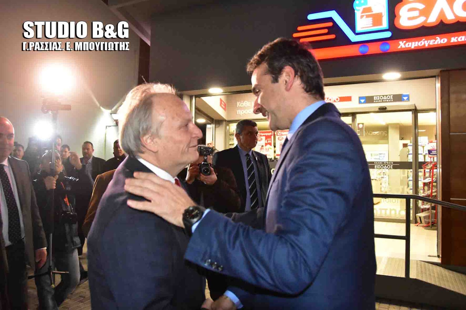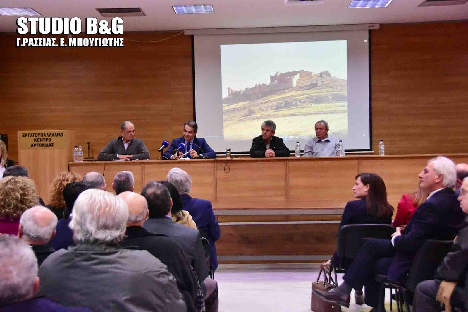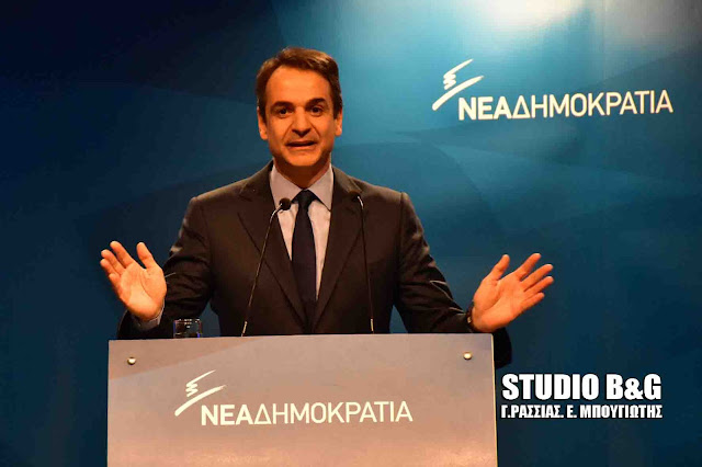 Η κεντρική ομιλία του κ Μητσοτάκη πραγματοποιήθηκε στο Ναυπλιο στην κατάμεστη αίθουσα του πολυχώρου Φουγάρο.