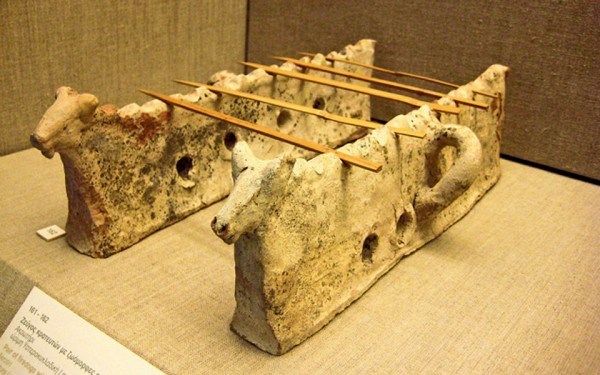 Μοναδικό εύρημα που εκτίθεται στην πρώτη αίθουσα του Μουσείου των Μυκηνών αποτελεί αδιάσειστο τεκμήριο για την προτίμηση των Μυκηναίων στα σουβλάκια: μια φορητή πήλινη εσχάρα όπτησης κρέατος σε καλαμάκια με πλευρά όχι μεγαλύτερη από μισό μέτρο.